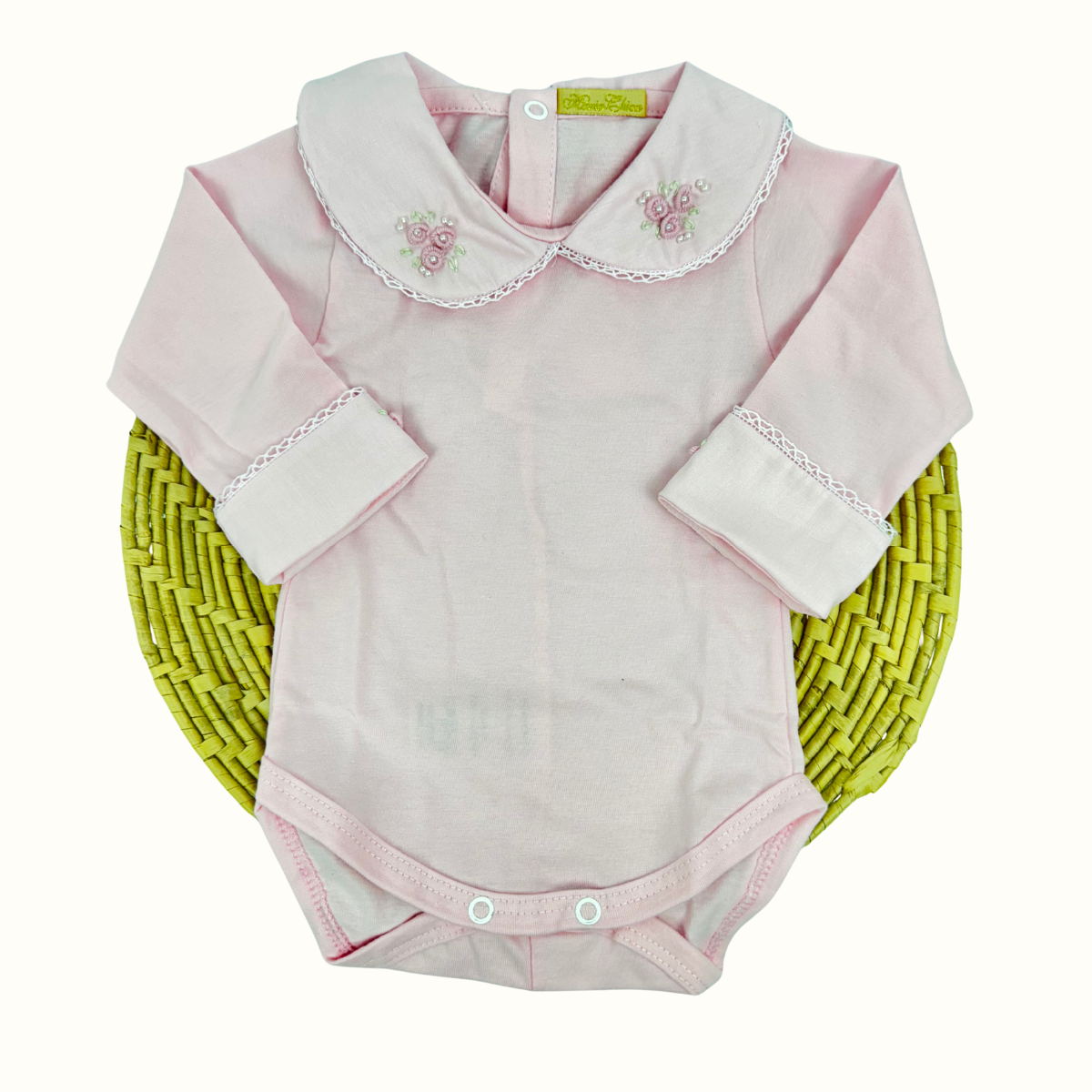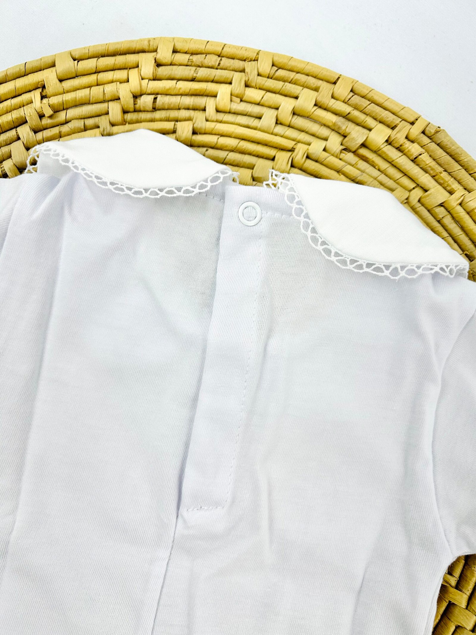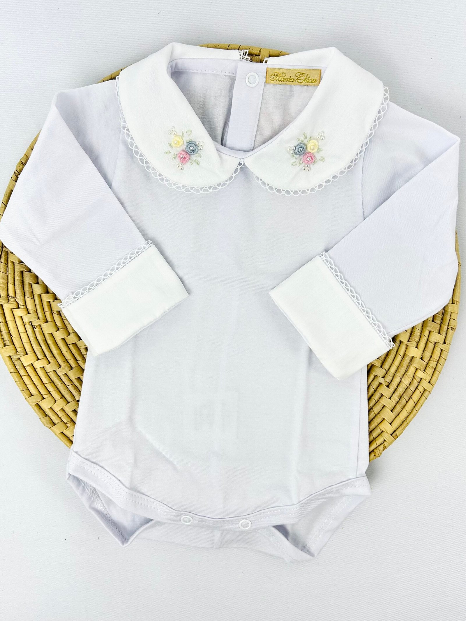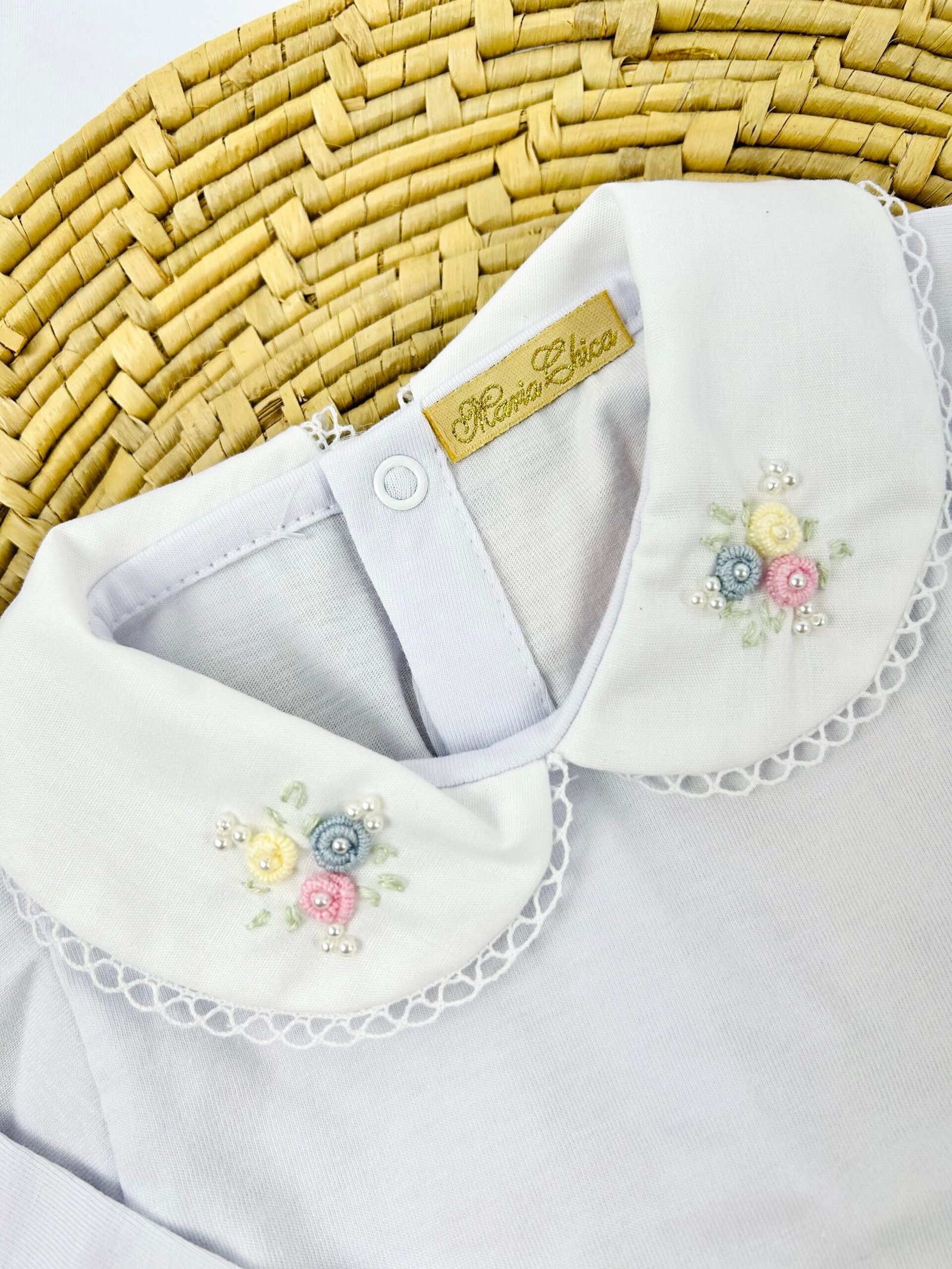 Body infantil com bordado artesanal, produzido com cuidado pela Maria Chica Bebê.