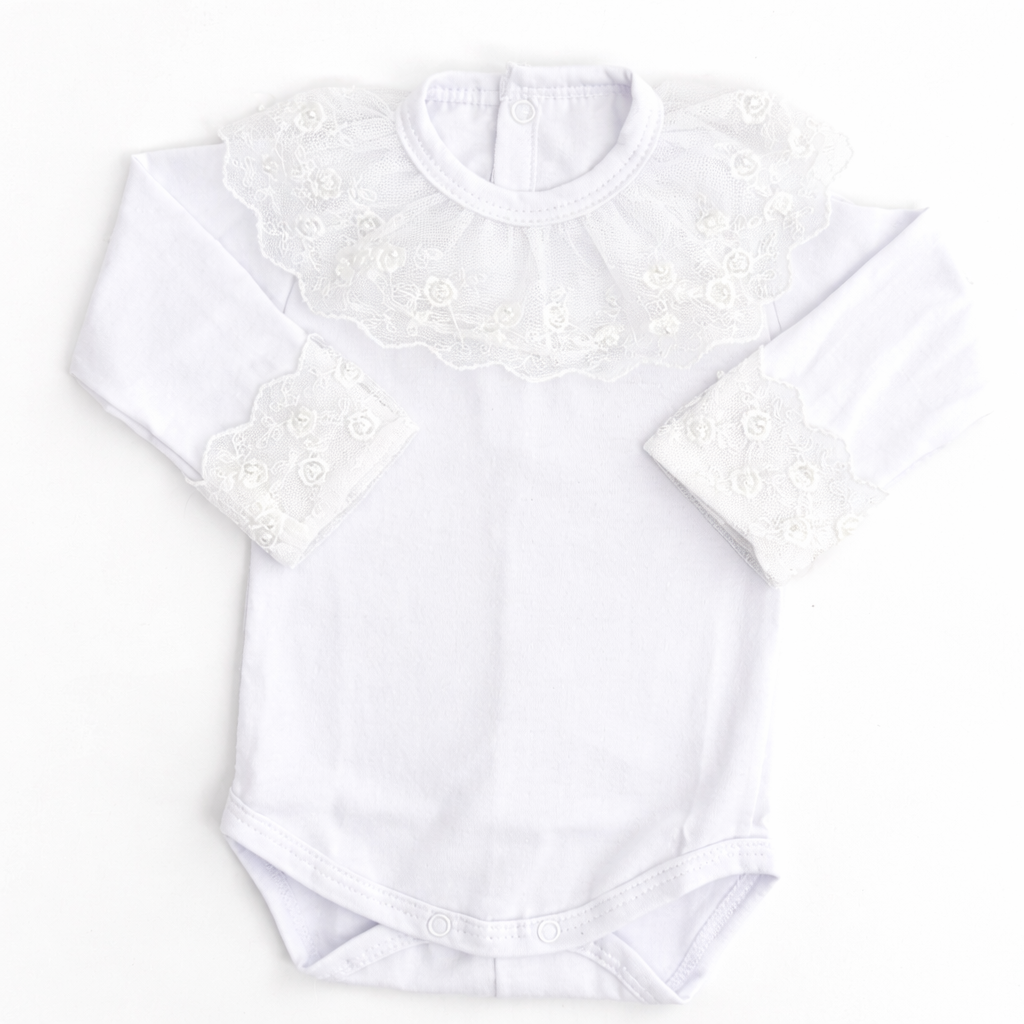 O Body manga longa renda é uma peça delicada e elegante, perfeita para o enxoval do bebê. Confeccionado em algodão macio, é confortável, leve e ideal para a pele sensível, garantindo bem-estar nos primeiros meses de vida.