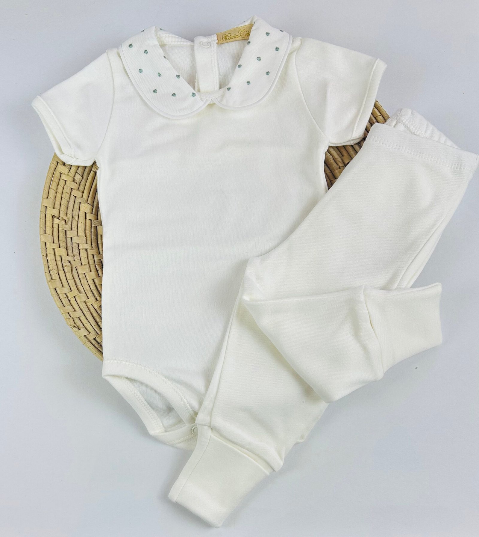 O Conjunto body manga curta poá bordado é uma opção delicada e atemporal para o enxoval do bebê. Confeccionado em algodão macio, é leve, confortável e ideal para a pele sensível, proporcionando bem-estar nos primeiros meses de vida.