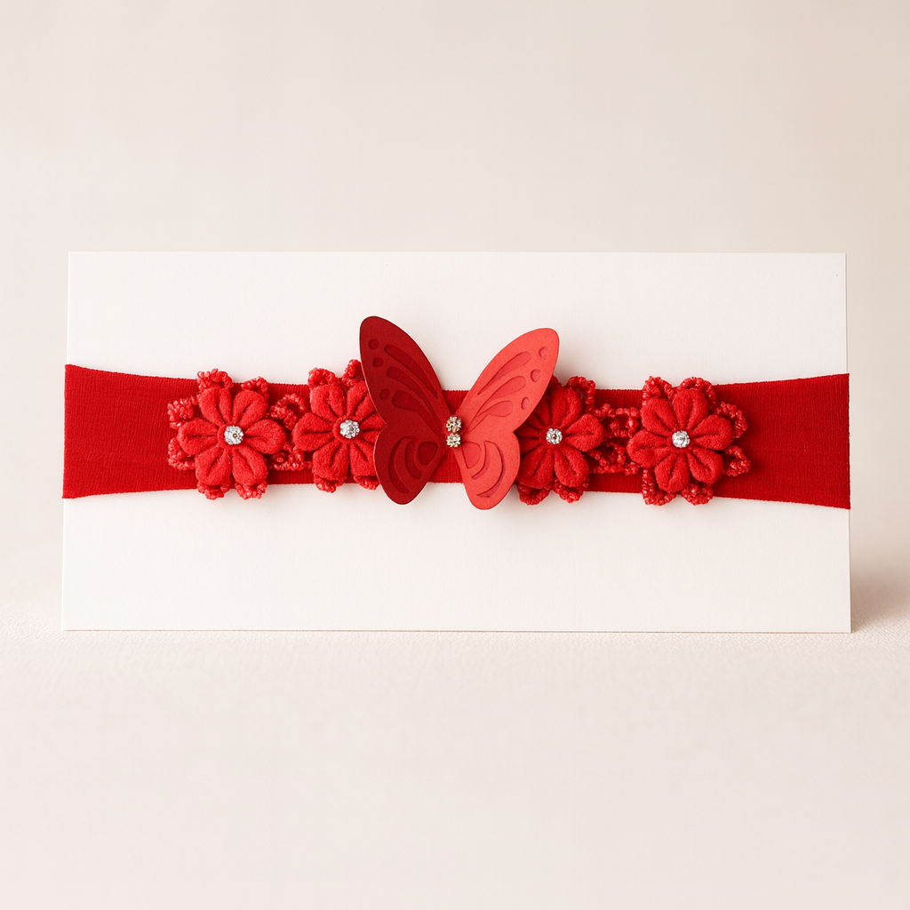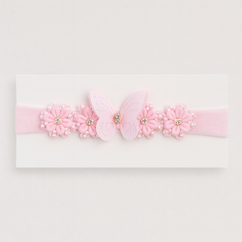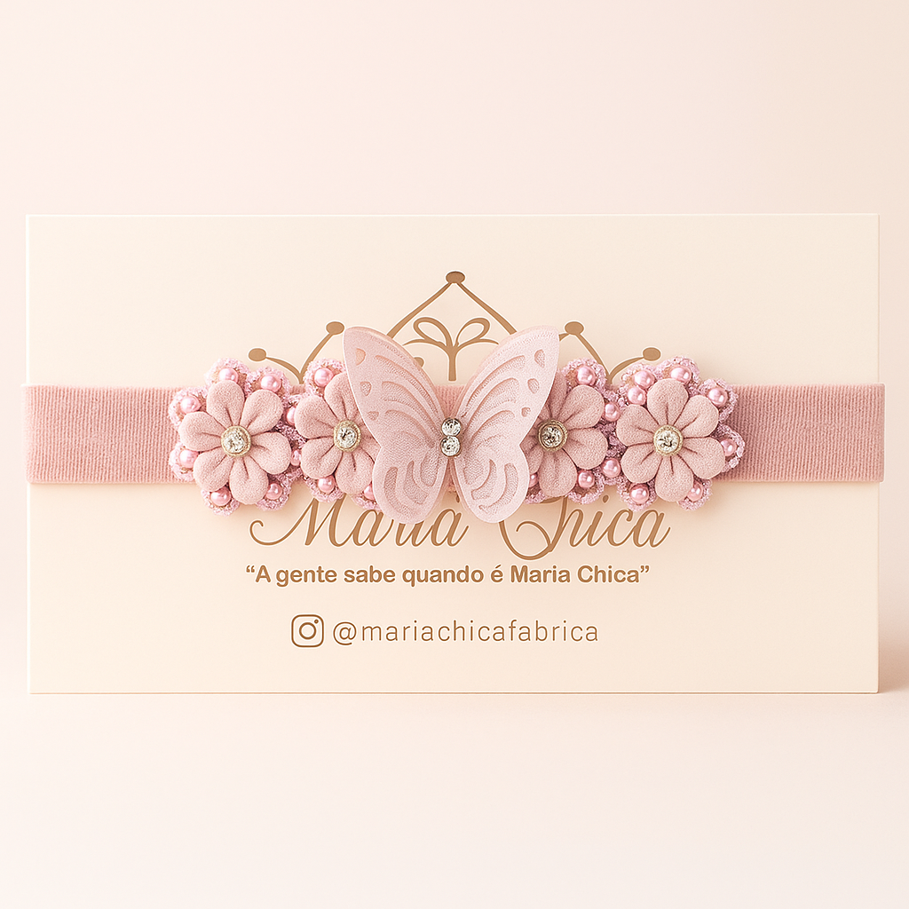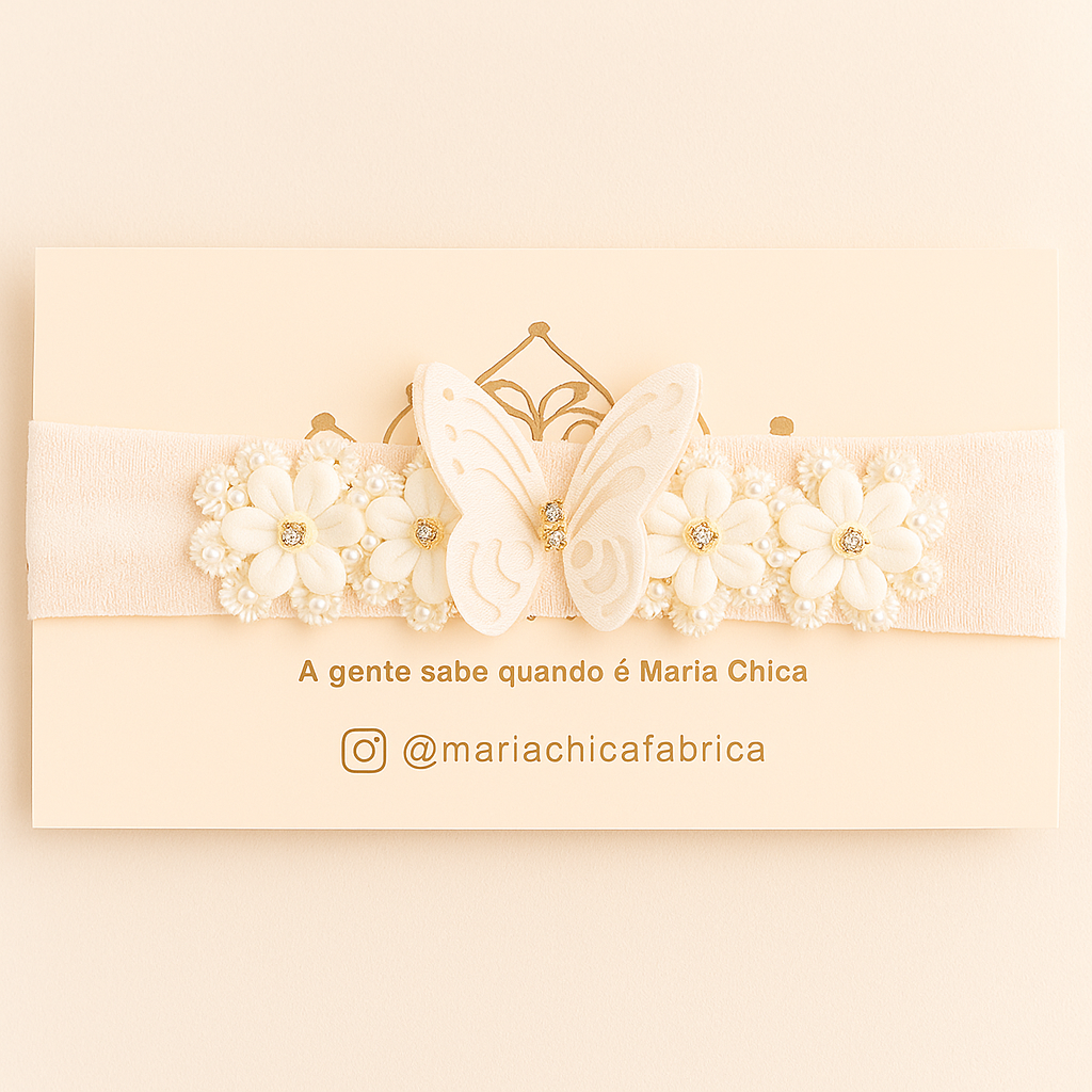 A Faixa Meia Borboleta Maria Chica é um verdadeiro encanto, feita à mão com delicadeza e amor para realçar a beleza natural das pequenas. 💕