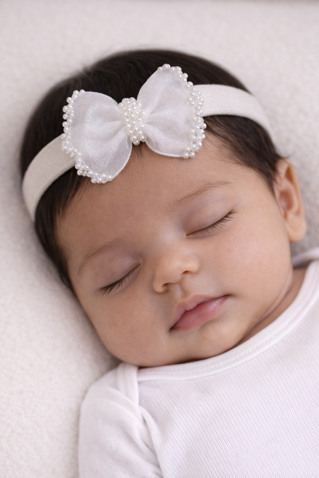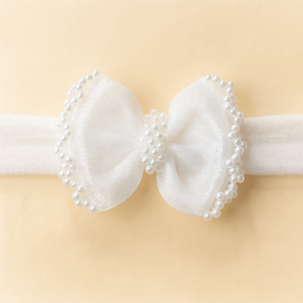 O laço delicado com acabamento em pérolas traz um toque clássico e elegante, perfeito para ocasiões especiais como batizados, ensaios fotográficos, maternidade e momentos cheios de carinho.