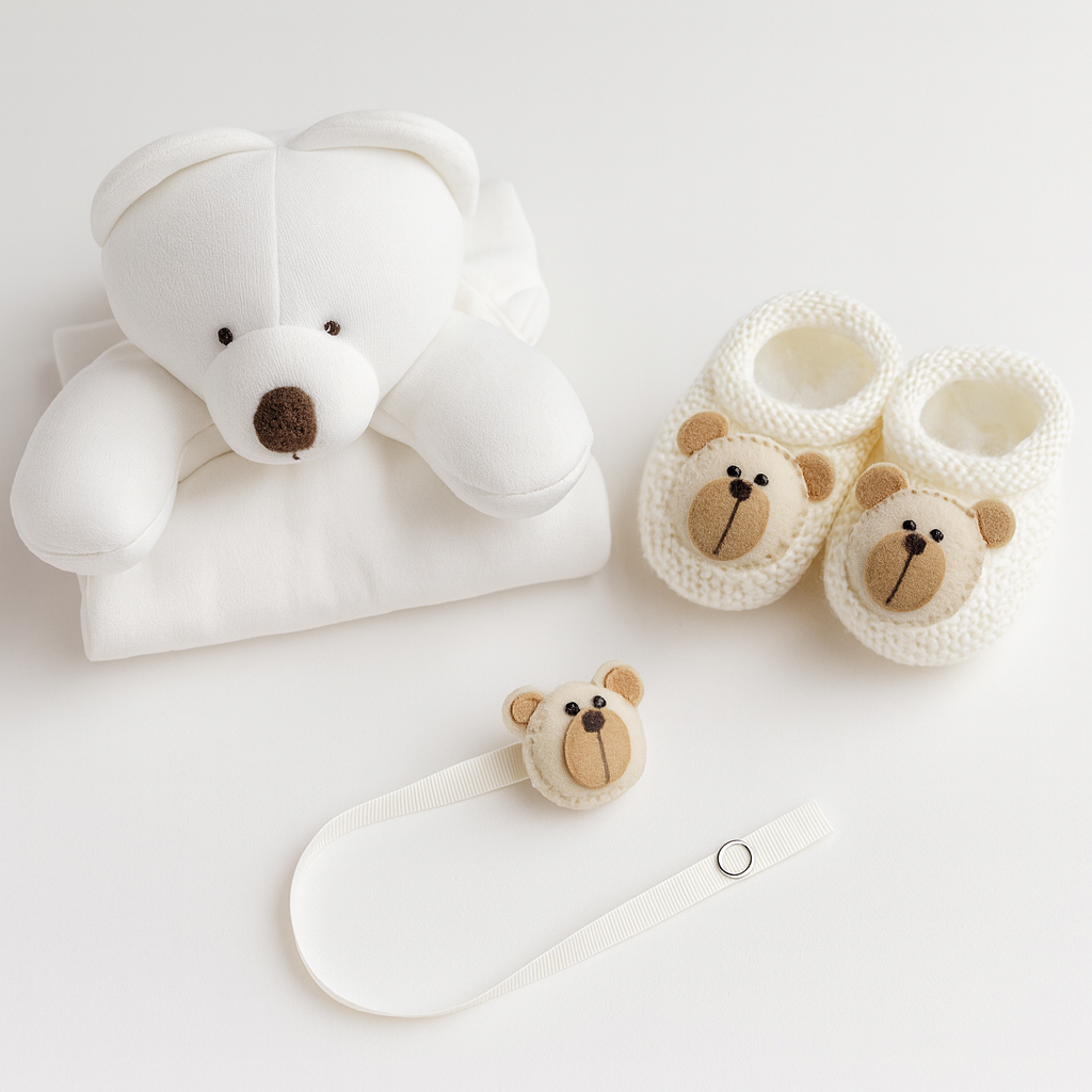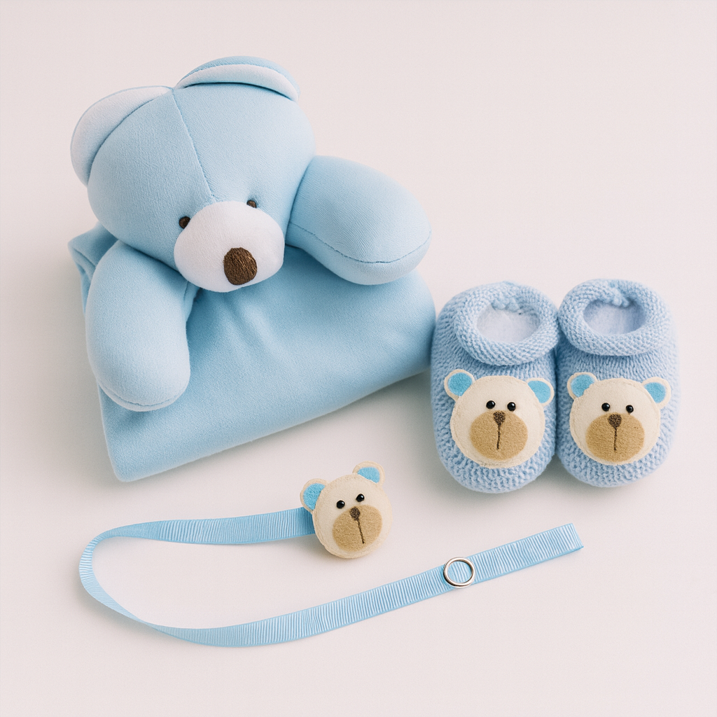 O Kit Presente Bebê Ursinho é delicado, funcional e cheio de encanto, perfeito para marcar os primeiros momentos do bebê com muito amor. Cada peça foi pensada para unir praticidade, estilo e aconchego em um só conjunto.