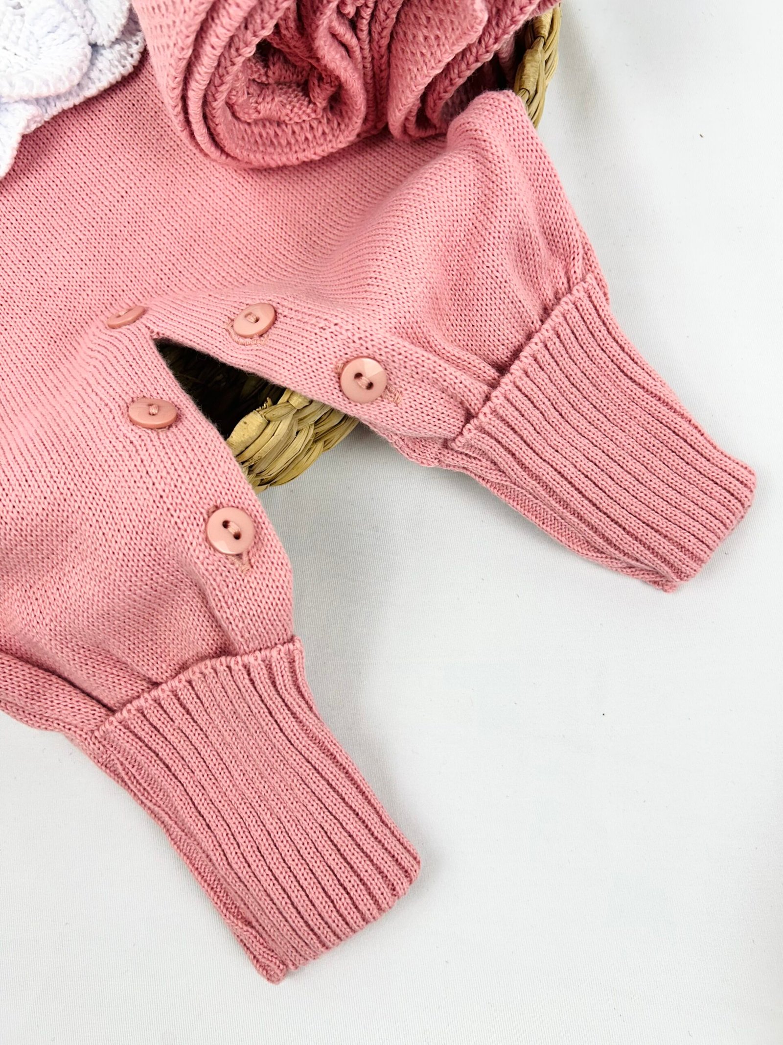 Disponível no tamanho unico, indicado para 0 a 3 meses. As cores disponíveis são: rose e rosa.
