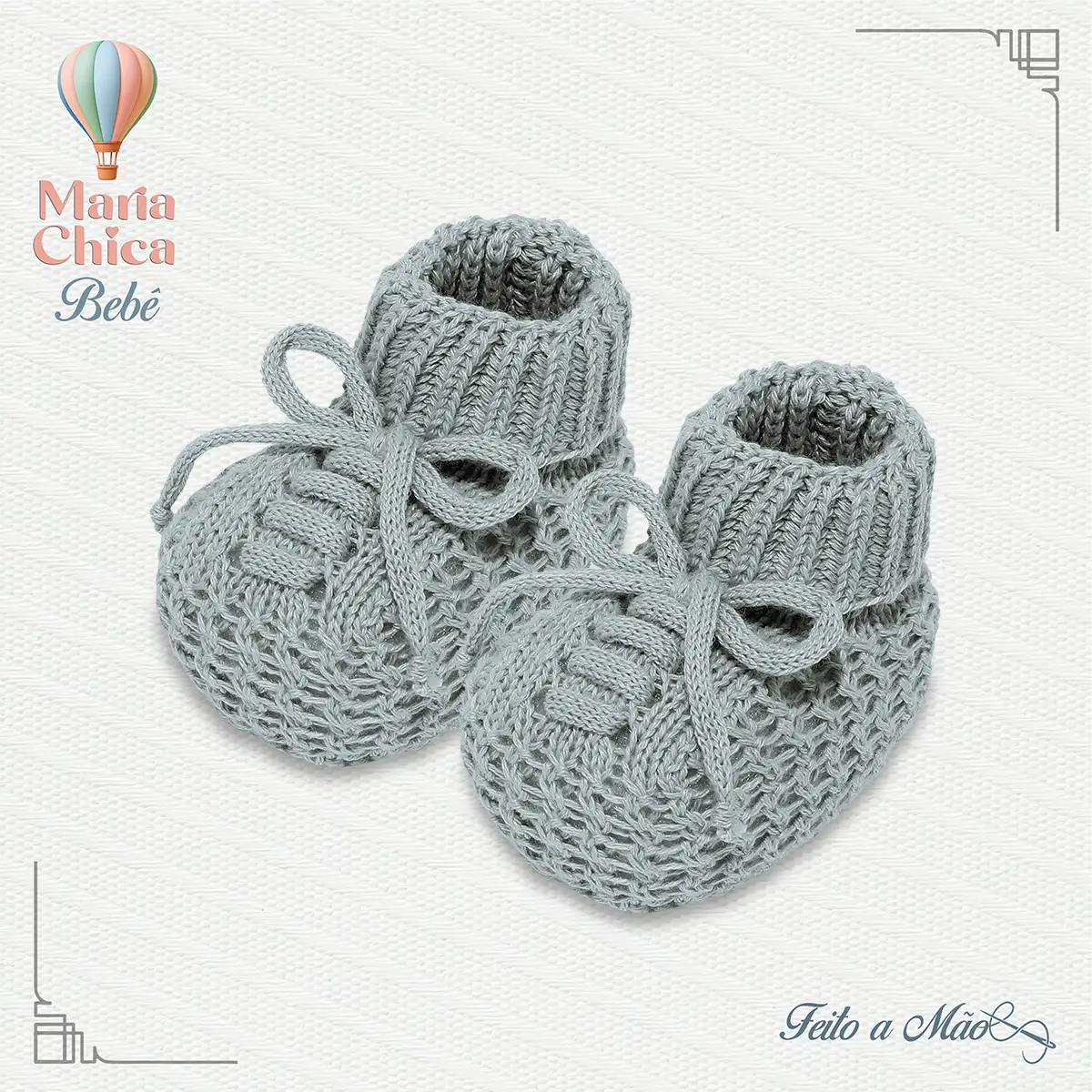 Sapatinho em linha com detalhe de cadarço, feito pela Maria Chica Bebê.