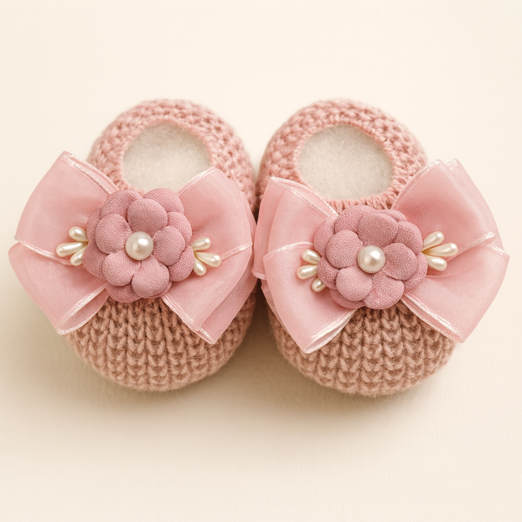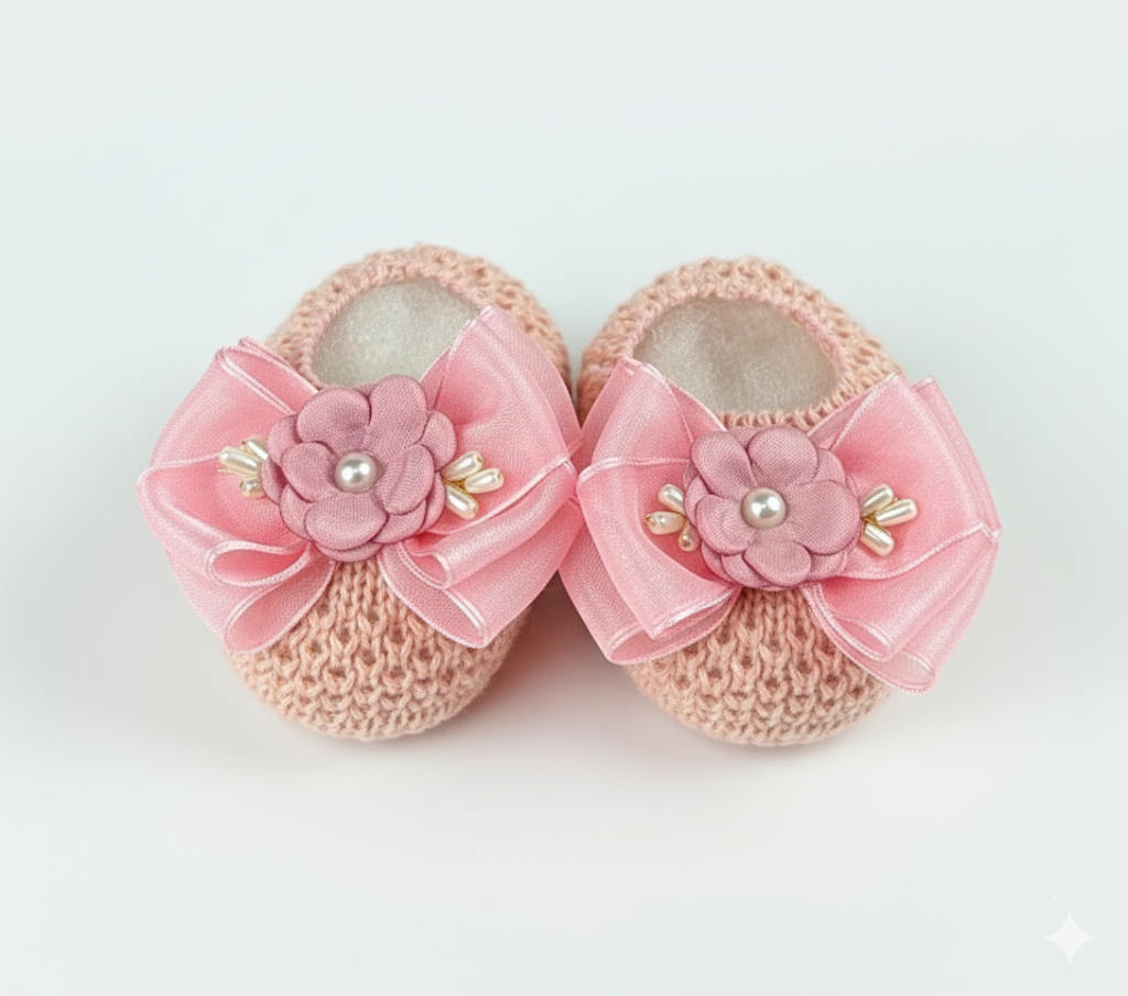 O Sapatinho Organza Flor Maria Chica é um encanto feito em tricot macio e delicado, perfeito para os primeiros momentos do bebê. 💖