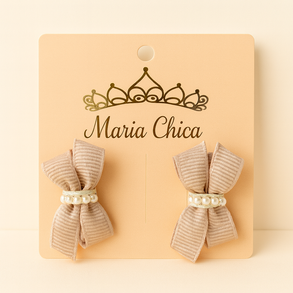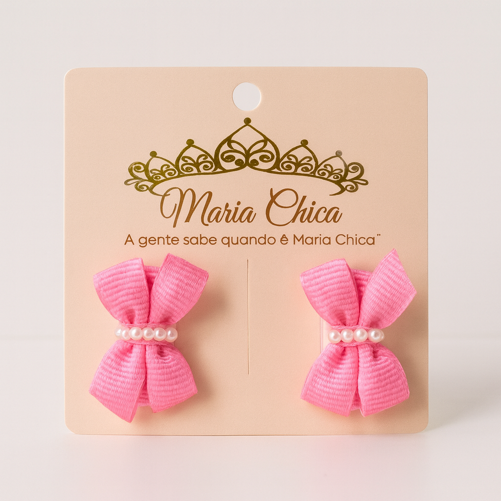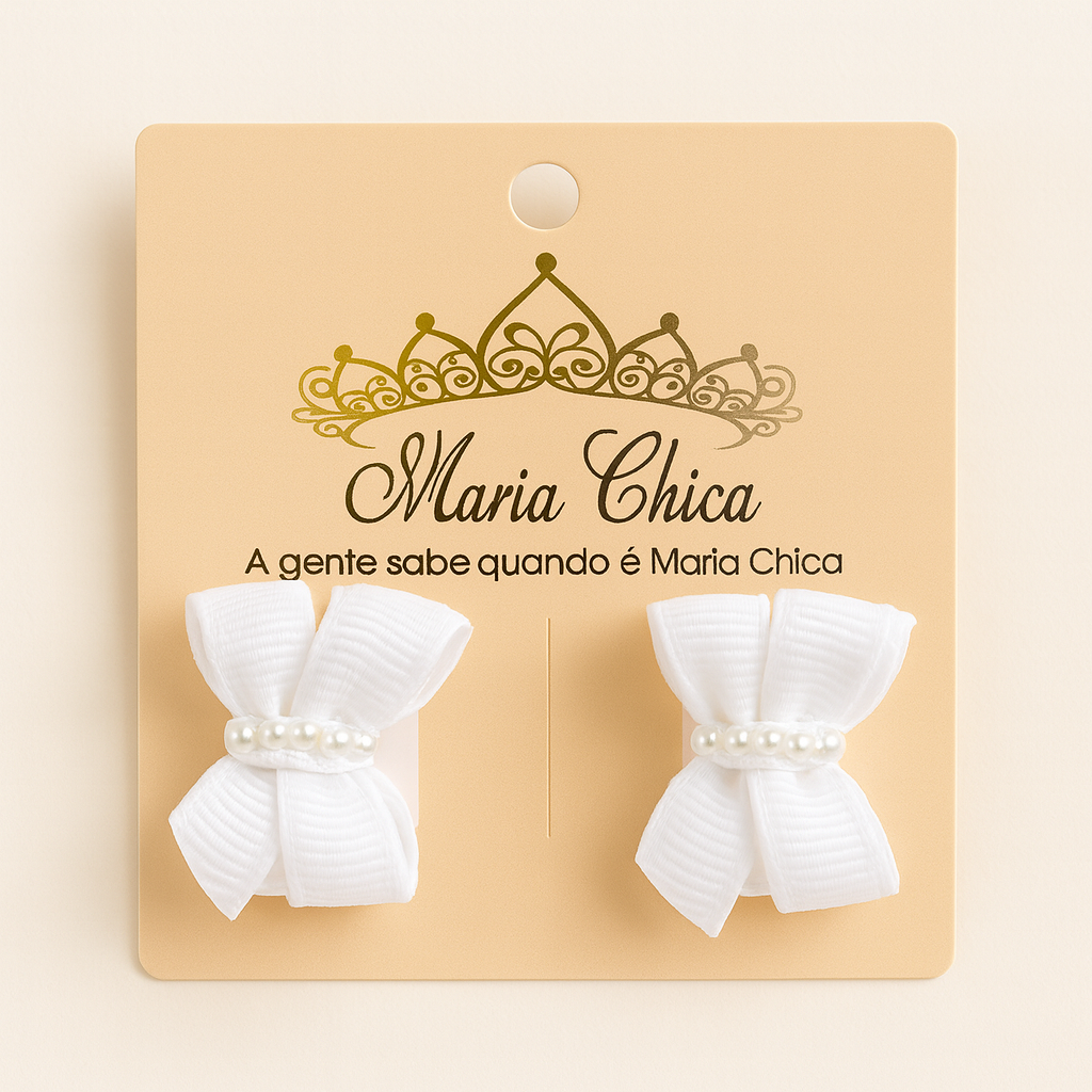 Produzidas à mão com laços em gorgorão de alta qualidade, cada presilha é finalizada com pérolas delicadas no centro, trazendo charme, sofisticação e um toque artesanal encantador.